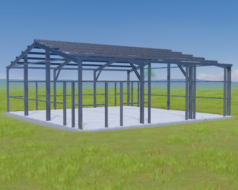 Package includes: Custom manufactured cold-form steel building system, 26G steel (PBR) roof & wall panels, color-matching fasteners. Stamped foundation & building drawings. Anchor bolt plans. Shipping to site.